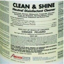 Clean and Shine is neutral pH, highly concentrated, pleasantly scented quaternary disinfectant formulation.
