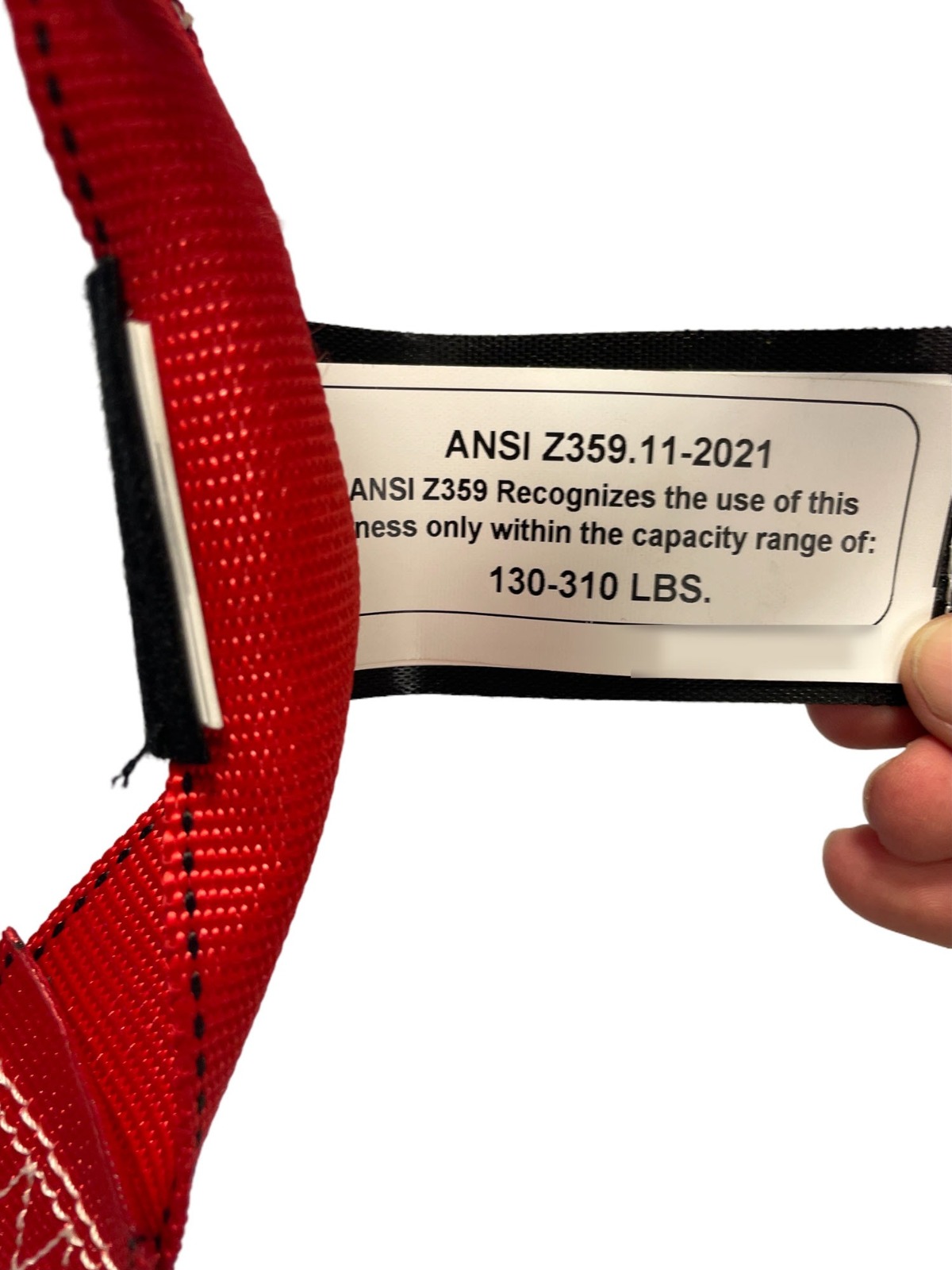 Harness meets or exceeds the stringent requirements of ANSI/ASSP Z359.11-2021