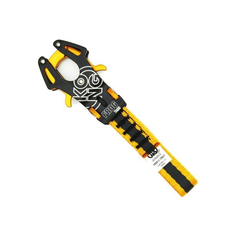 With an innovative approach that characterizes KONG comes the Frog, a revolutionary directional connector with an automatic clamping action that engages when it touches the anchor point. Produced after an intensive design phase in collaboration with Politecnico of Milan, the Frog is a totally new connector, both in its appearance and mechanism. Frog makes the concept of a carabiner thought of as a “hook” obsolete. The insertion is extraordinarily quick and safe, even in “distant” anchor points, not easily reached with standard connectors. It automatically clamps when coming into contact with the anchor point. Sling length of 120mm. High quality, completely developed and produced in Italy. Tested piece by piece.