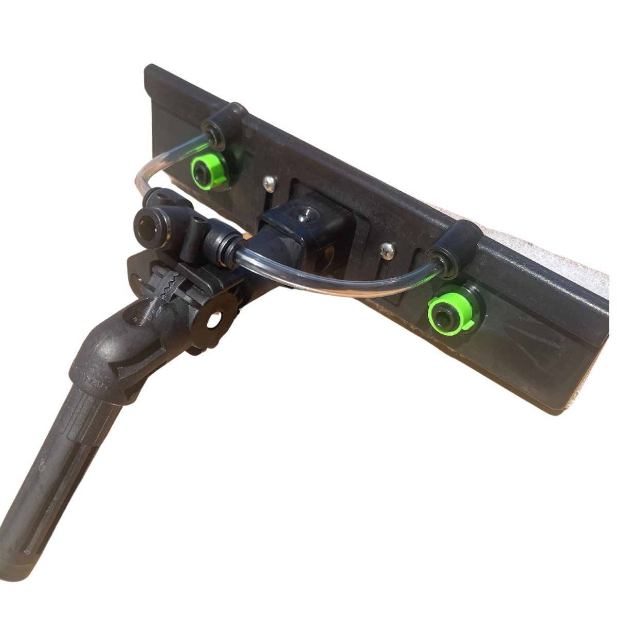 The Gardiner Scrubber with Rinse Bar is a premium Water-Fed scrub pad designed for efficient window cleaning and rinsing. This scrub brush features a robust, lightweight construction and high-quality pad for effective scrubbing. The built-in rinse bar ensures a thorough rinse, eliminating streaks and leaving windows crystal clear. The included Hi-Flow jets enable a greater water output, allowing for faster and more efficient rinsing. Easily switch between the rinse bar and jets, or upgrade to use both at the same time. Its compact 10-inch size makes it ideal for reaching tight spots while still covering a broad cleaning area. This tool is perfect for professional window cleaners seeking a Water-Fed brush with great scrubbing action and easy-to-use rinse bar that delivers exceptional results and flexibility.