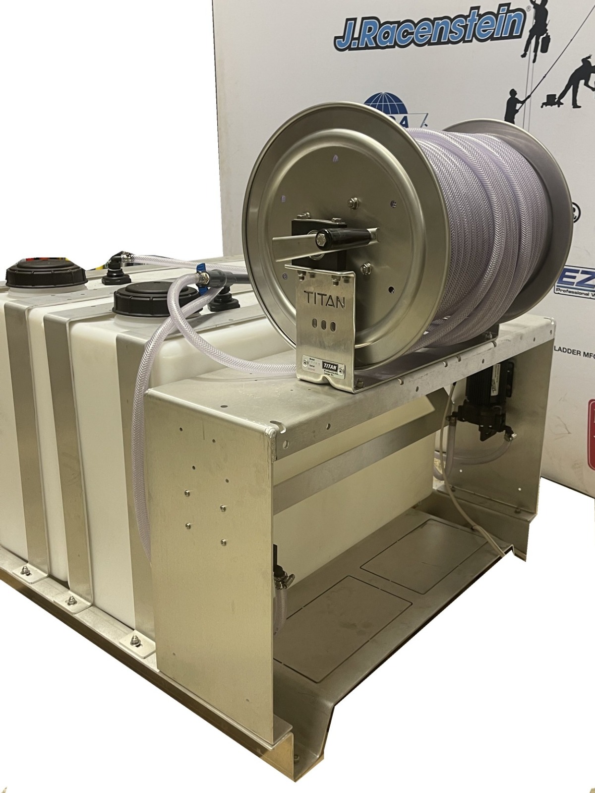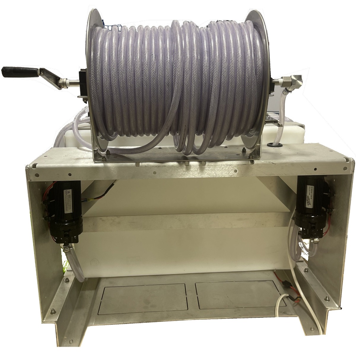 The Reel is robust and holds 300 feet of 1/2in spraying hose allowing you to gain access in even themost diffuclt of places.