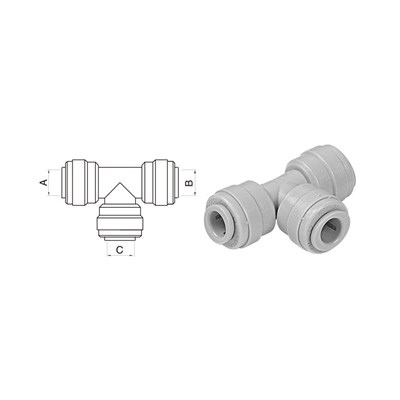 ProTool Tee Fitting Union OD Tube (A)1/2in x (B)1/2in x (C)3/8in